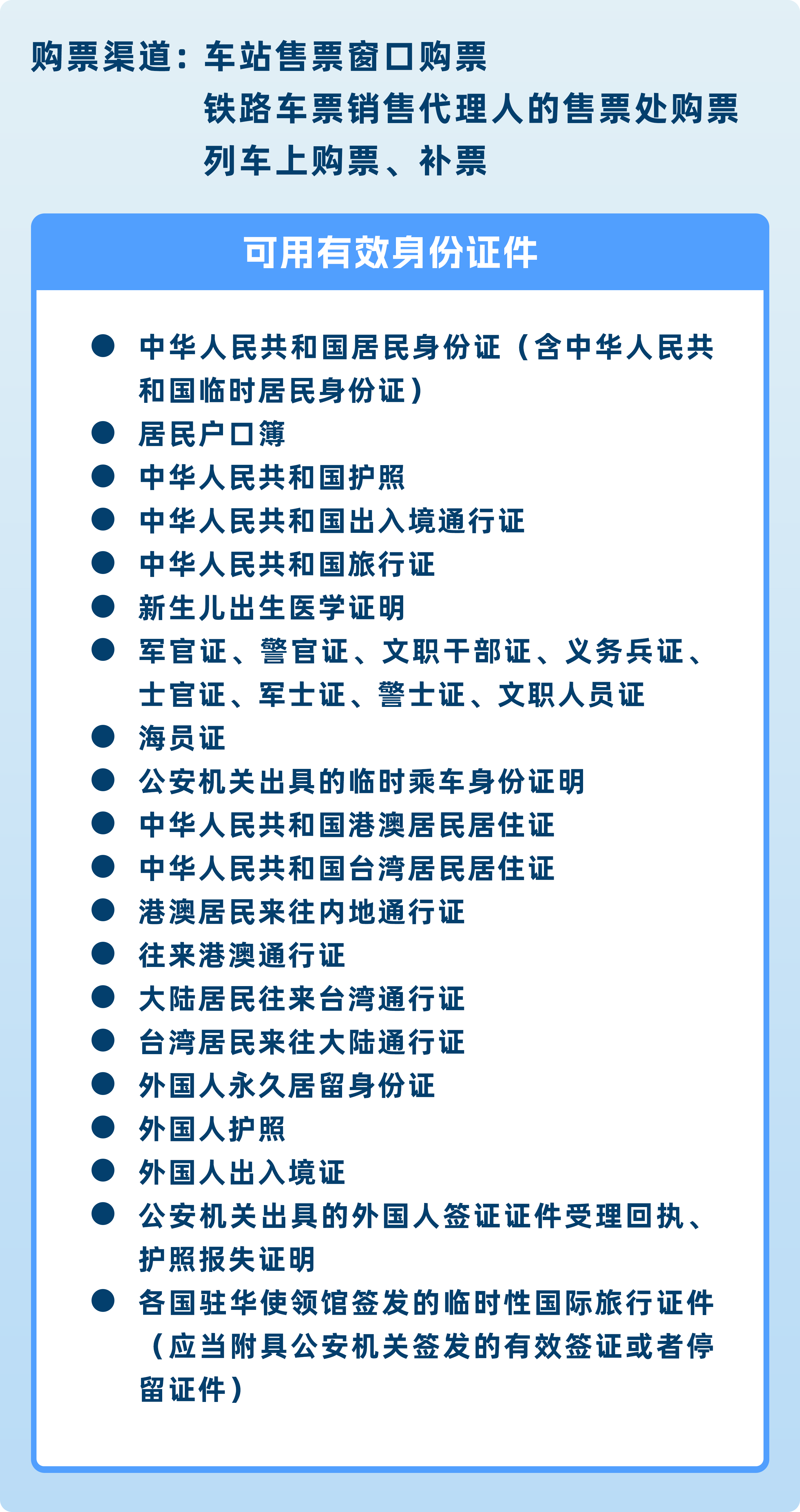 购票可用身份证件